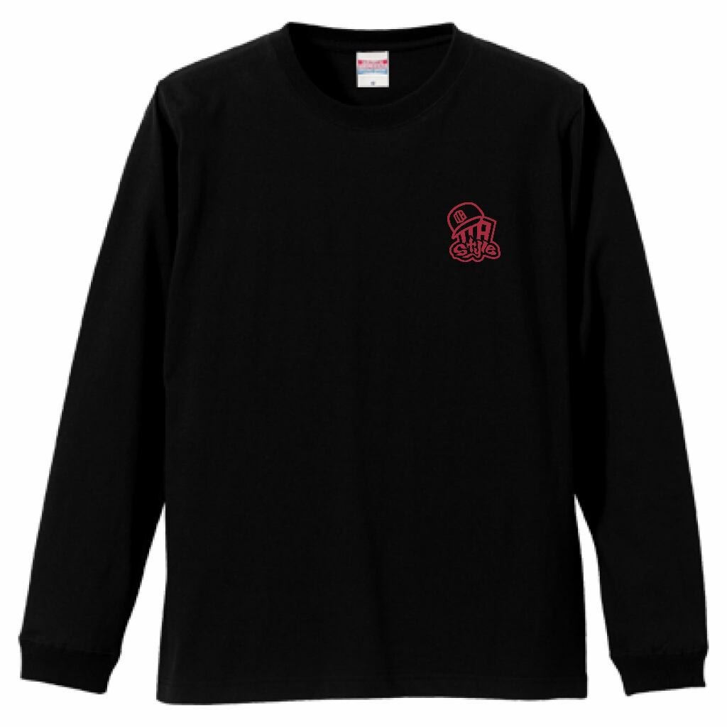 008STYLE.TOKYO(レッド文字)ロングTシャツ (リブ付き)113ブラック