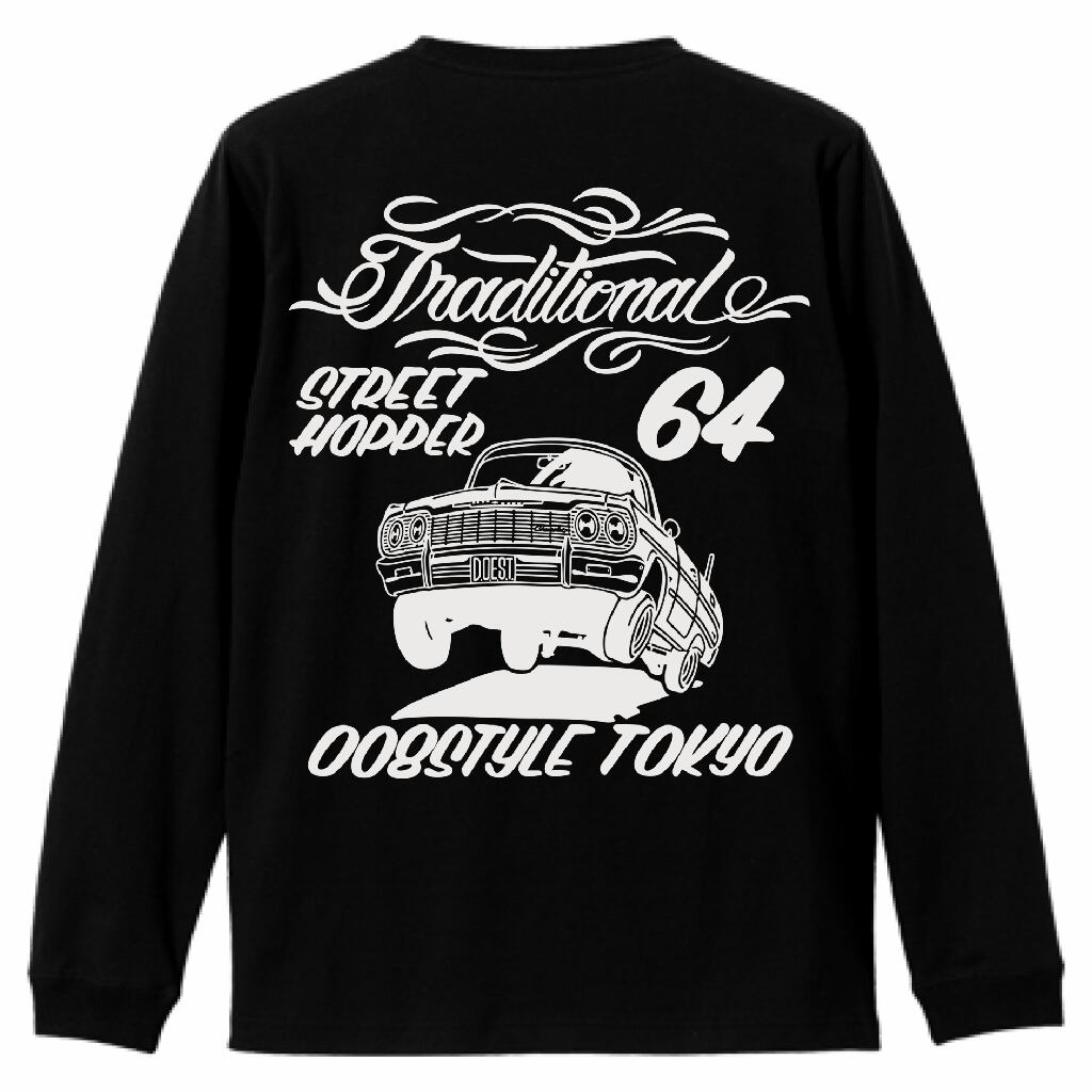 008STYLE.TOKYO(ホワイト文字)ロングTシャツ (リブ付き)113ブラック