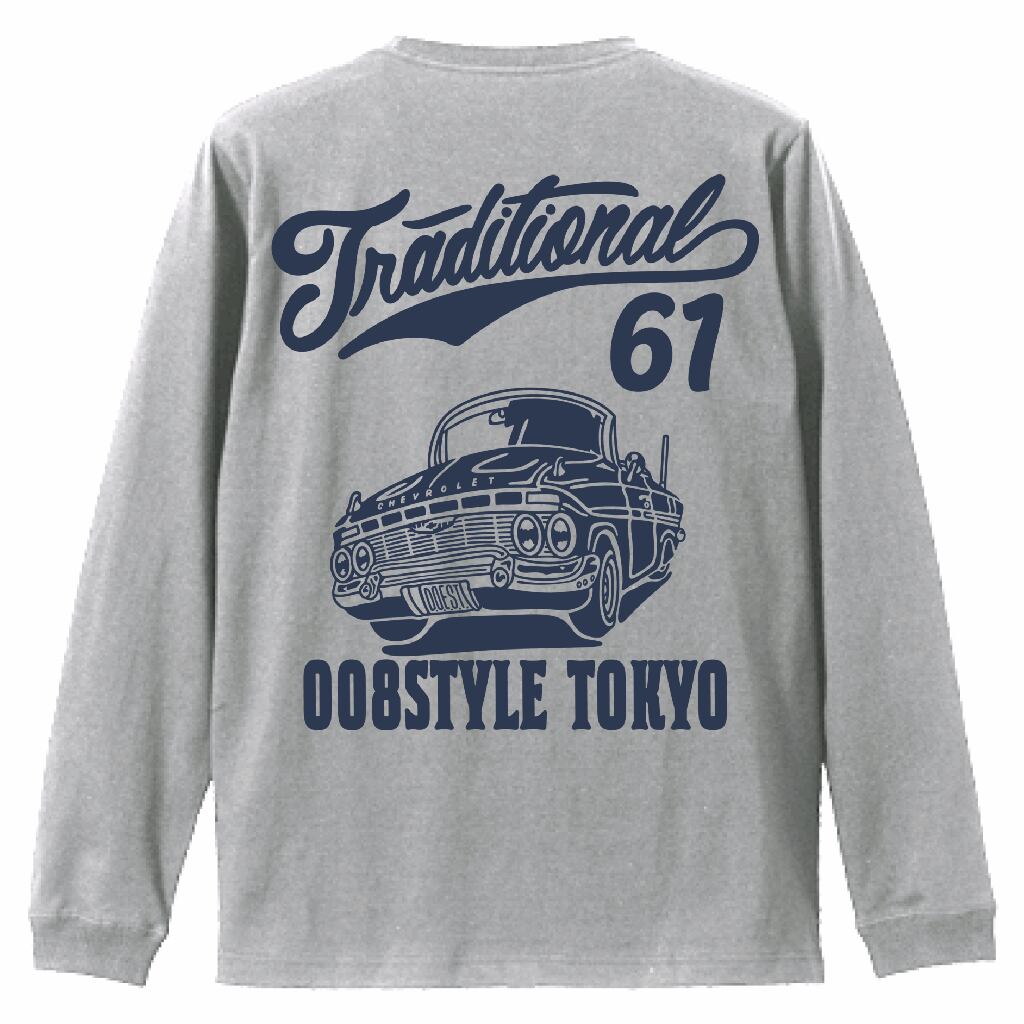 008STYLE.TOKYO(ネイビー文字)ロングTシャツ (リブ付き)124グレー